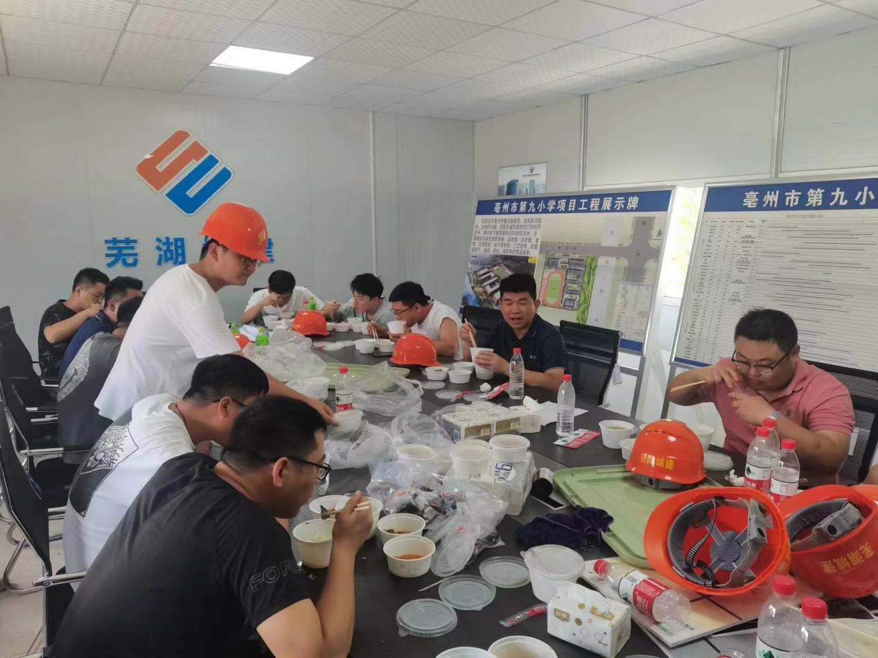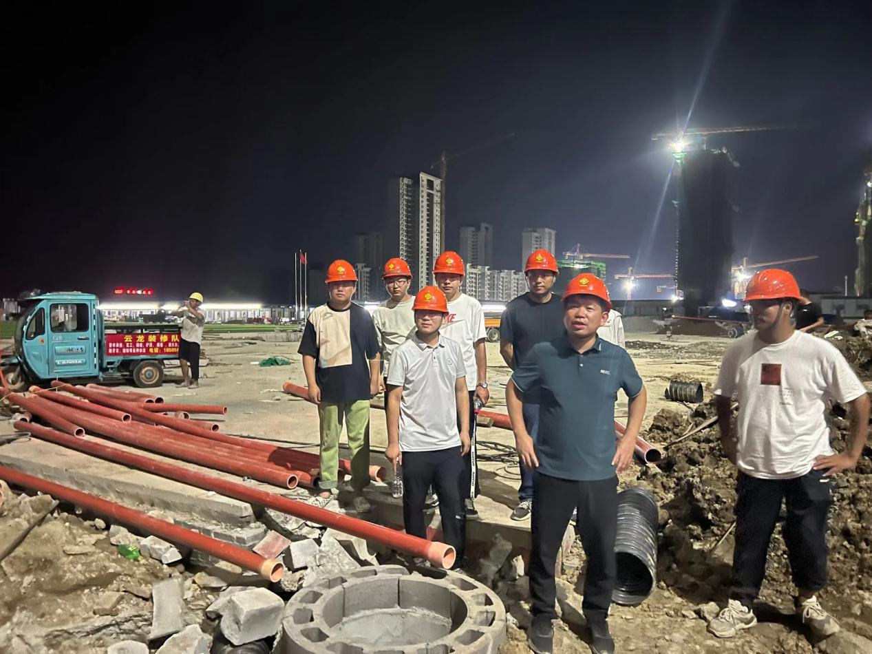 在楊總的統(tǒng)籌下,各位同事思路清晰,現(xiàn)場指揮調(diào)度不見一絲慌亂,充分利用吃飯時間開展碰頭會,交流工作計劃,協(xié)調(diào)各交叉作業(yè)面。每天傍晚楊總帶領(lǐng)各區(qū)域管理人員去全場各處查看施工進(jìn)度情況,根據(jù)既定的施工安排,把握一天的施工進(jìn)度。到了夜晚,現(xiàn)場依舊燈火通明,如若白晝,各單位各部門按照排好的計劃,有條不紊地進(jìn)行施工作業(yè),凝心聚力保目標(biāo)。相信在大家的努力奮斗下,我們必然能夠圓滿完成任務(wù),給集團(tuán),給亳蕪園區(qū),給亳州市交上一份滿意的答卷。人類的贊歌是勇氣的贊歌,而城建人的贊歌是奮斗者的贊歌,時間會帶給我們最好的答案。