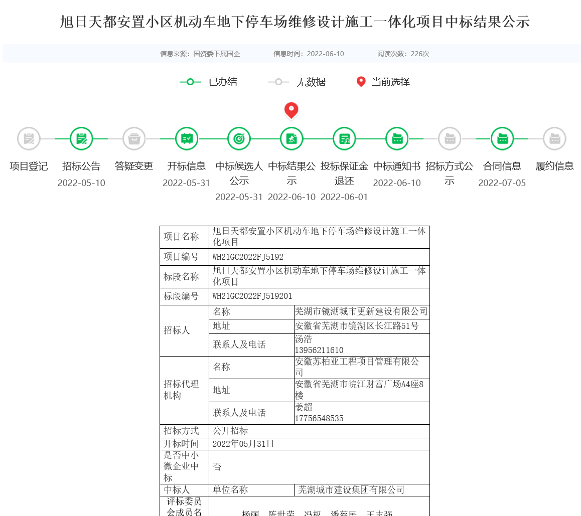 6月10日,集團(tuán)公司以6045萬(wàn)元的報(bào)價(jià)中標(biāo)了旭日天都安置小區(qū)機(jī)動(dòng)車地下停車場(chǎng)維修設(shè)計(jì)施工一體化項(xiàng)目。