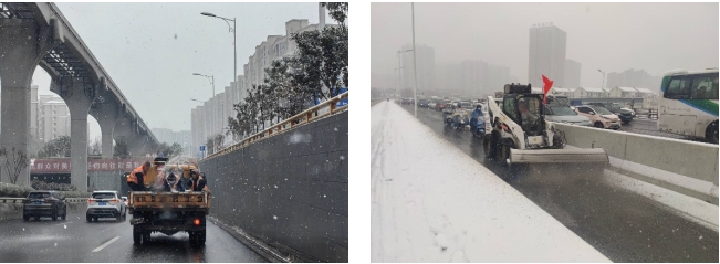 蕪湖城建集團(tuán)提前部署,規(guī)劃區(qū)域,第一時(shí)間啟動(dòng)除雪防災(zāi)應(yīng)急預(yù)案,截止19日上午10時(shí),共出動(dòng)應(yīng)急人數(shù)1230人、各類掃雪應(yīng)急車輛裝備130余臺(tái)、布撒融雪劑170余噸,完成城市主次干道、橋梁清掃約37公里,城市天橋10座,為群眾安全出行保駕護(hù)航。