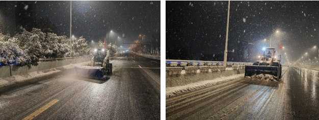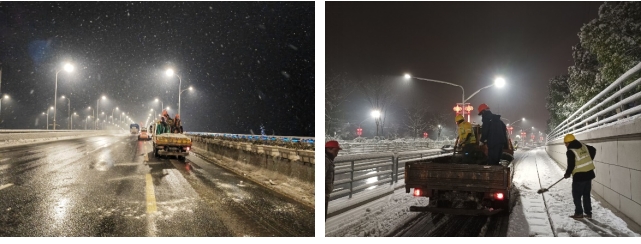 為防止路面結(jié)冰,集團(tuán)組織人員清除路段積雪,橋梁上,道路旁,一群群城建人手拿鐵鍬掃帚,一輛輛掃雪車轟鳴工作,奮戰(zhàn)在漫天飛雪中,為行人開(kāi)辟出一條條溫暖路、平安路。