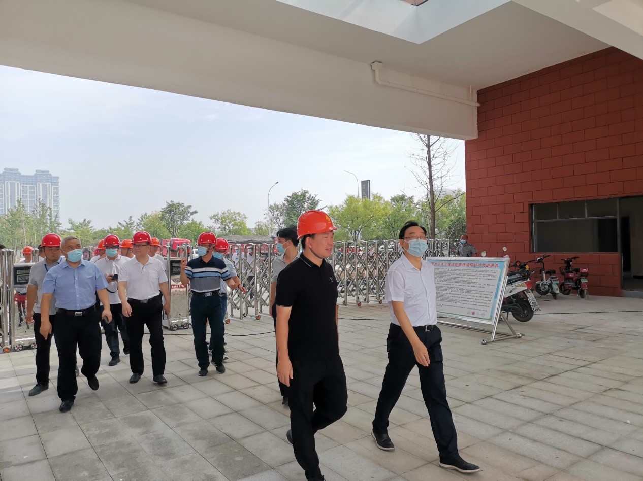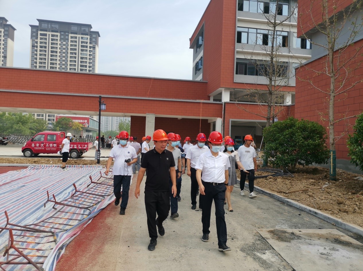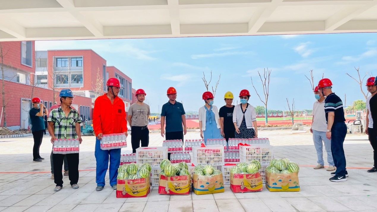 次日,亳蕪園區(qū)管委會劉主任、教育局周局長到九小項目檢查指導工作,帶去慰問瓜果冷飲物品,關(guān)心高溫天氣下九小施工人員的身體狀況。同時視察九小項目各個建筑物的完成情況,確保9月能夠迎來九小的第一批學生,也能夠提供給學生們一個安全舒適的學習環(huán)境。
