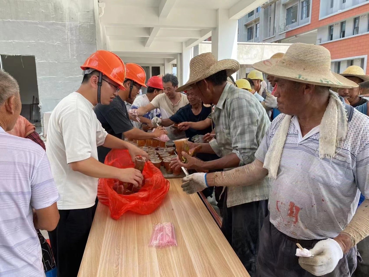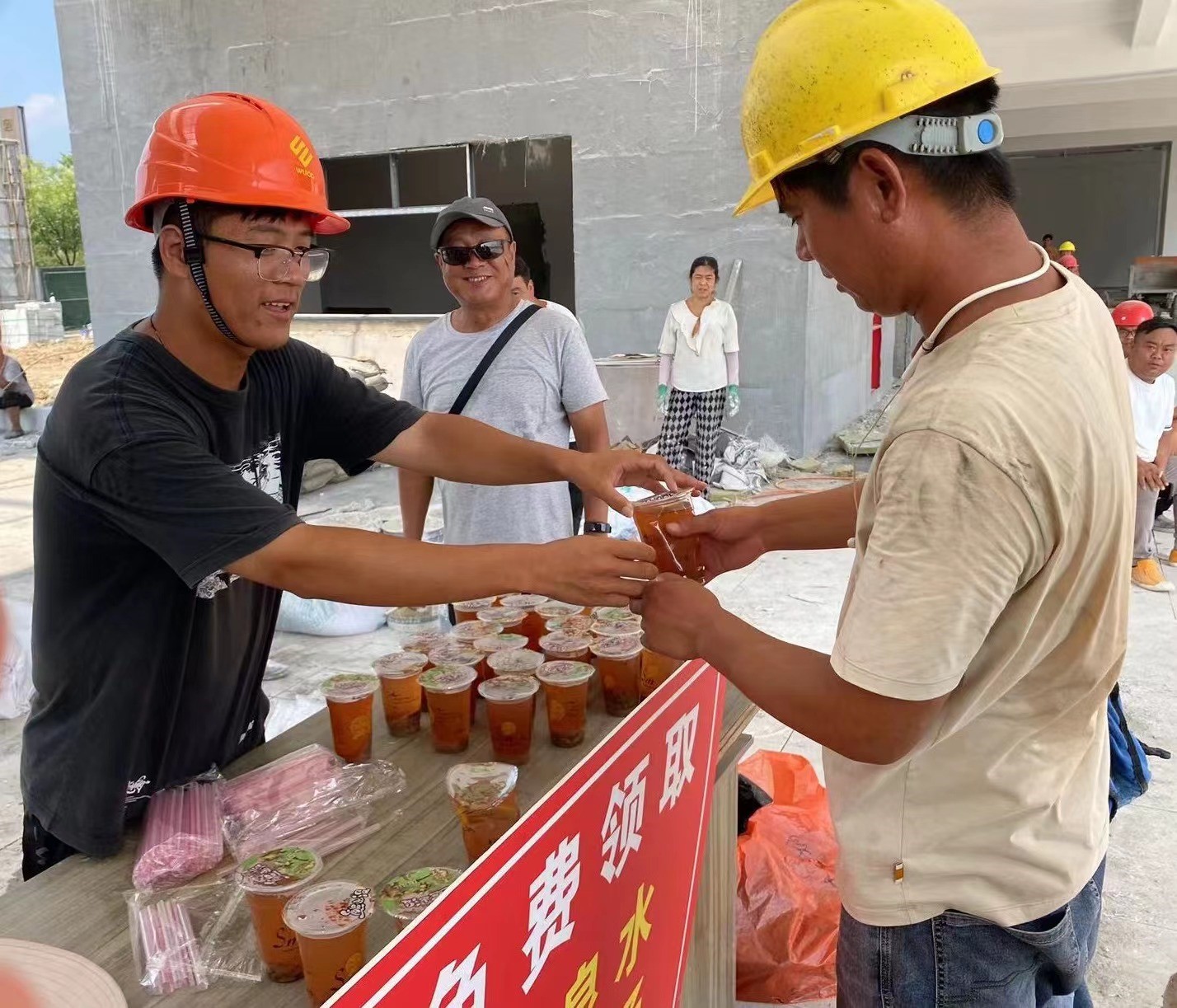 為積極響應園區(qū)管委會領(lǐng)導的指示精神,嚴格落實高溫防暑保障、安全生產(chǎn)各項措施,楊總要求各施工班組要及時關(guān)注天氣氣溫變化,確保高溫天氣下安全作業(yè)不出差錯。在出現(xiàn)高溫預警的第一時間,就做好準備,將仁丹、藿香正氣水、礦泉水和綠豆湯提前發(fā)放到現(xiàn)場管理人員及施工人員的手上。在第一次高溫達到40℃的時候出現(xiàn)了數(shù)名施工人員身體不適,項目部拿出備好的藥品冷飲,因處理及時,并未出現(xiàn)進一步的傷害。充分證明有備無患,未雨綢繆的重要性。