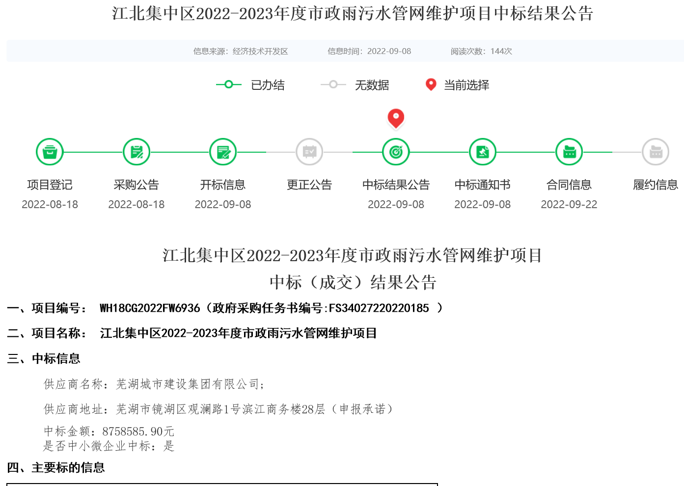 隨著城市經(jīng)濟建設(shè)的快速發(fā)展,地下雨污水管網(wǎng)不配套、設(shè)施老化等問題日顯突出。9月,繼鏡湖區(qū)保興垾等水系底泥清淤項目后,集團公司又中標江北集中區(qū)2022-2023年度市政雨污水管網(wǎng)維護項目,中標價875萬元。