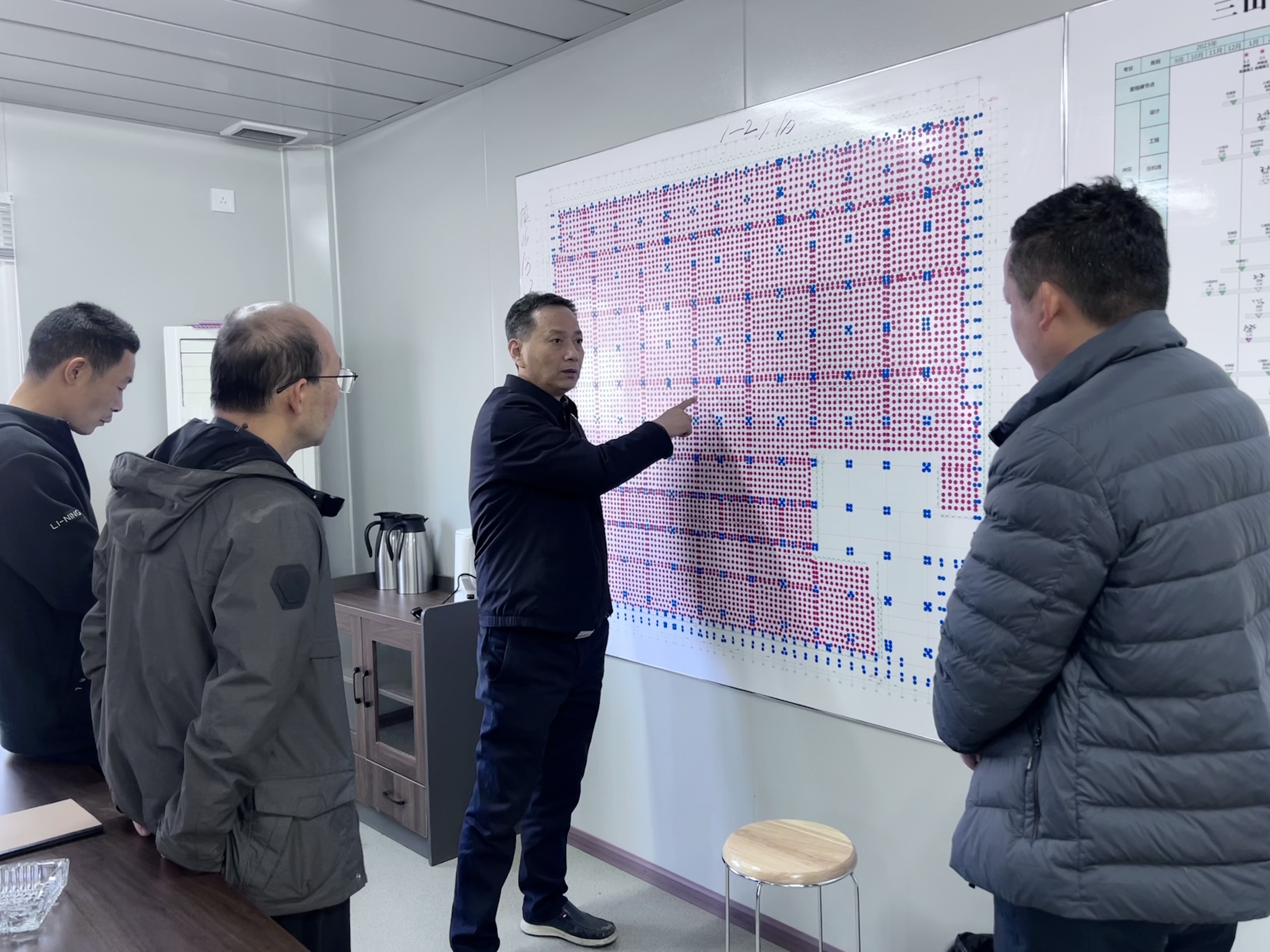 G60項(xiàng)目現(xiàn)完成樁基施工、現(xiàn)場(chǎng)臨水、臨電、圍擋、施工大門(mén)以及出入口硬化等三通一平工作。為了爭(zhēng)取盡快完工,最大限度縮短開(kāi)工等待時(shí)間,實(shí)行“樁基先行”,將建設(shè)項(xiàng)目分為樁基和主體兩部分工程,分階段辦理。朱志福針對(duì)目前的項(xiàng)目情況,要求項(xiàng)目部合理組織,加快工期,緊盯設(shè)計(jì)進(jìn)度,盡快辦理主體階段審圖合格證和施工許可證,全力搶占工期。