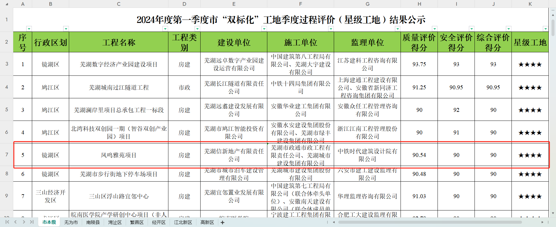 值得一提的是,鳳鳴雅苑項(xiàng)目在 2024 年度第一季度市“雙標(biāo)化”工地季度過(guò)程評(píng)價(jià)中力拔頭籌,榮獲四星級(jí)工地的殊榮,這無(wú)疑是對(duì)項(xiàng)目團(tuán)隊(duì)始終堅(jiān)守高標(biāo)準(zhǔn)、高質(zhì)量建設(shè)原則的高度認(rèn)可與贊譽(yù)!